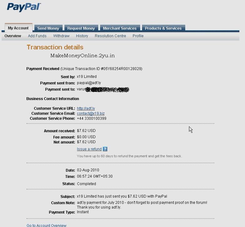 Adfly pays me $7.62 on 2nd august 2010 – legit money