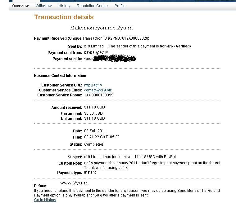 $11 payment from adfly – Payment proof – on 9th feb 2011