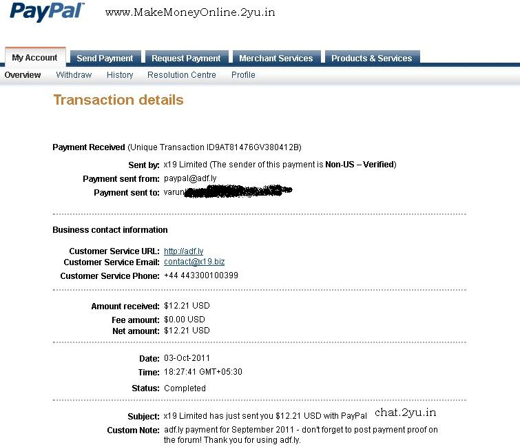 $12.21 payment from adfly – Payment proof – on 03 Oct 2011