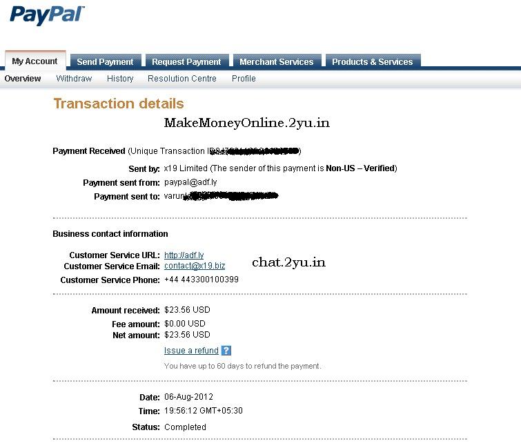 $23.56 payment from adfly – Payment proof – on 06 August 2012