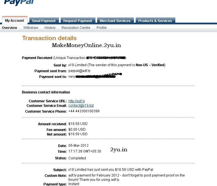 $18.59 payment from adfly – Payment proof – on 05 March 2012